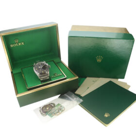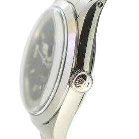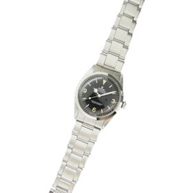 このモデルは1969年製造のEXPLORER 1で、アメリカの海軍の購買部(NAVY EXCHANGE)で販売され、保証書、説明書、タグ等全て細かな付属品が揃った貴重なコレクションとなります。 ダイヤルの変遷で言えば正にミラーダイヤルからマット(つや消し)のダイヤルに変更の最初期型から1970年代に特徴的に云えばかなりプリント技術が向上し、細い線と太い線の強弱が細かく整った70年代中期仕様の文字盤との間の文字盤プリントの特徴を持つ文字盤仕様の当時のオリジナルダイヤルとなります。 夜光塗料の焼けの状態としては文字盤と針の夜光塗料が均一に焼けた、バランスの取れた当時のままのオリジナルコンディションとなっております。ブレスレットはオイスターリベットブレスレットとなっております。機械は1965年から搭載されたキャリバー1570となっておりますが、最初期仕様のハック(秒針停止)機能のないムーブメント仕様となります。全体に当時のままのとても良いコンディションとなっております。