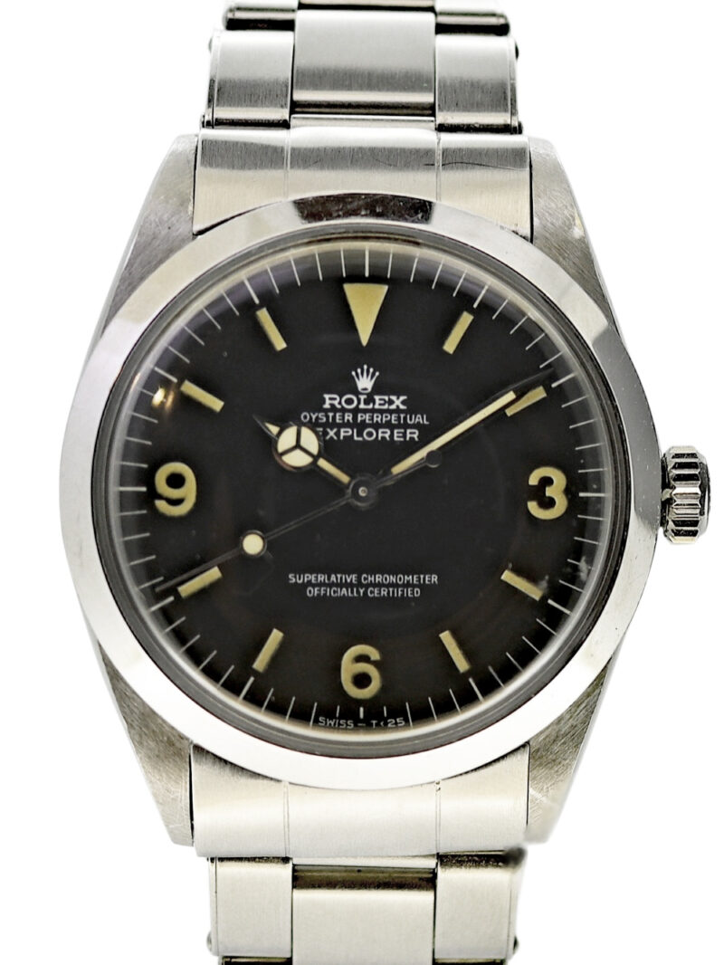 1953年、ジョン・ハント隊長率いるイギリス・エベレスト登頂隊のヒラリー卿とシェルパのテンジンらが5月29日にエベレスト登頂に成功したのを記念し、夜光アラビア数字のブラックダイヤルモデルにEXPLORERとネームが入れられました。 その後最終的にはロレックス社の沢山のモデルの中で、文字盤に夜光塗料の数字を使った文字盤はエクスプローラーモデルのみとなり、1989年のREF.14270がREF.1016の後継機種として登場し、近代的な数字を使ったモデルのEXPLORERモデルとなり、文字盤の上に直に夜光数字を乗せるという旧式の文字盤デザインは廃止となりました。