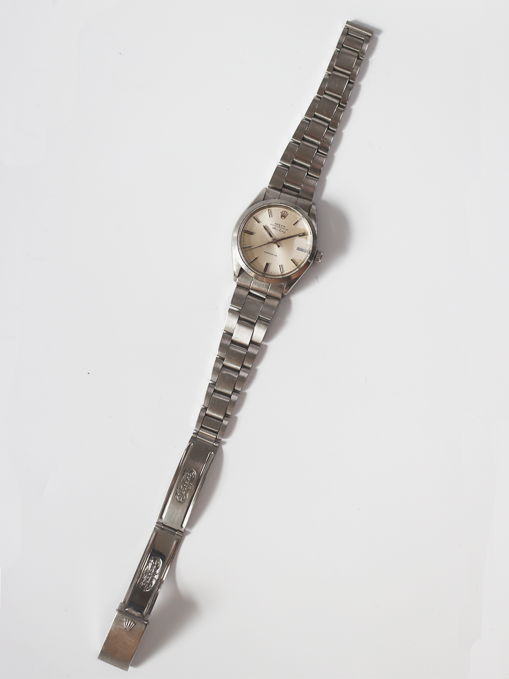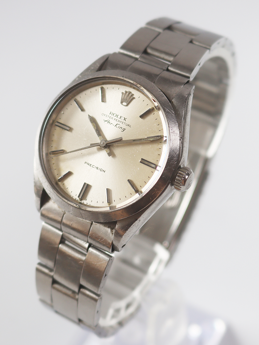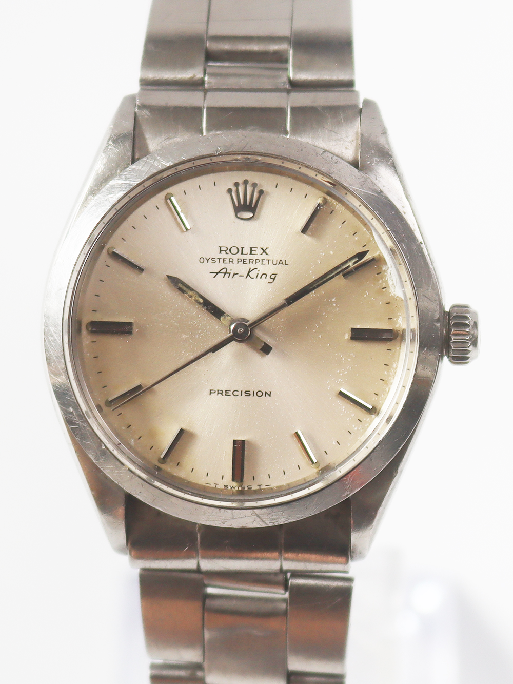 この時計はエアキングモデルの1973年製造モデルで文字盤がシルバーサテン仕様となっており極めてシンプルな文字盤デザインの一つです。若干経年変化は見られますが当時のままのオリジナルコンディションとなっております。
