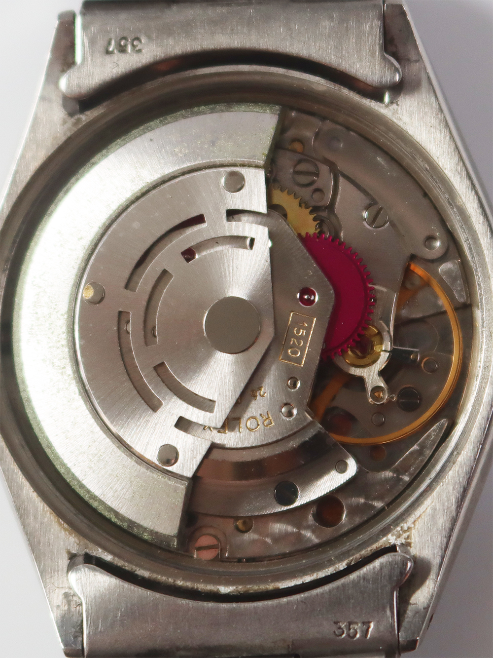 ロレックス社の自動巻きキャリバー(機械)の変遷において1930年代のバブルバック、1950年代のセミバブルバック、を経てローターの巻き上げを両回転巻き上げ可能方式にし、巻き上げ効率を高めたキャリバー1030は自動巻きの信頼性をかなり高めたキャリバーとなりました。 1957年にキャリバー1500系初期1530の完成でクロノメーターには課題を残すものの、ほぼロレックス社の自動巻きは完成期を迎えました。その後1560,1520、1570とクロノメーターキャリバーもこの1500系で安定期を迎えました。 こうしたロレックス社の自動巻きモデルで最もシンプルなカレンダー機能を装備しないモデルの一つがエアキングモデルとなります。