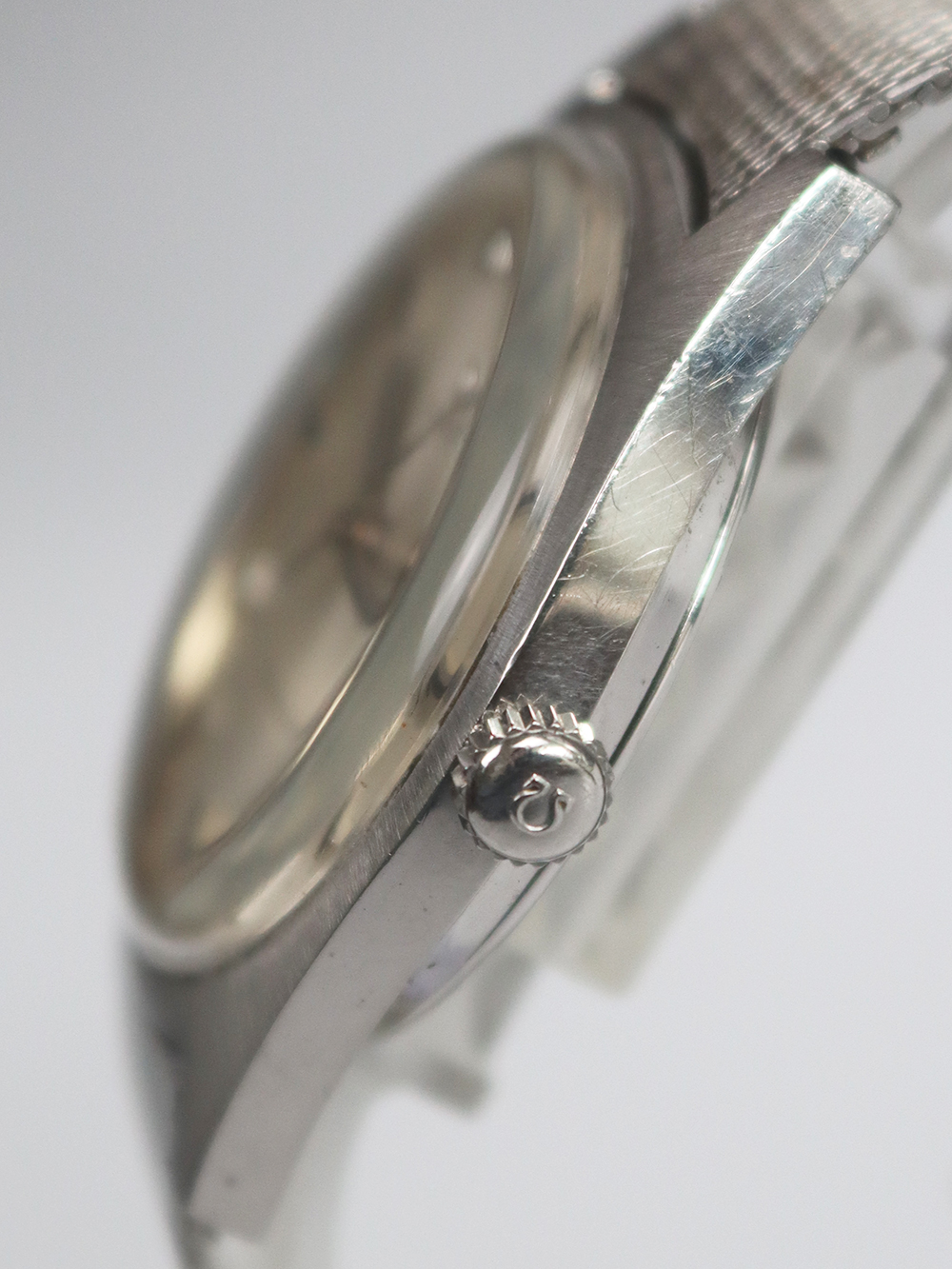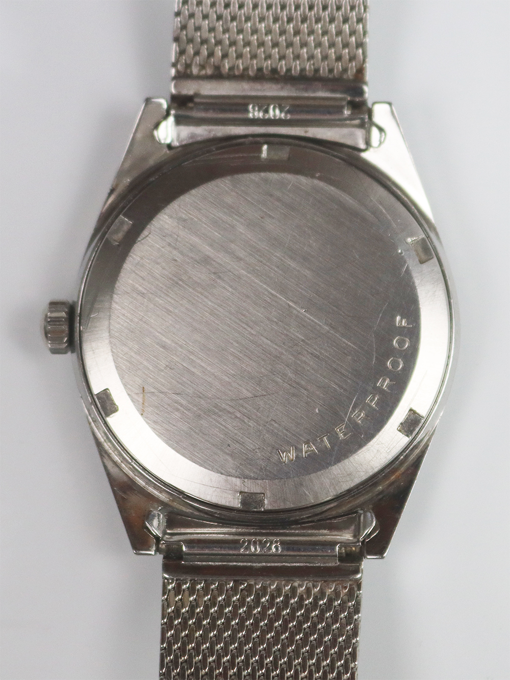 このモデルは残念ながら1970年代製となりますのでディフュージョンモデルとなりますが、とてもシンプルでブレスレットも特殊なメッシュブレスレットでクラスプ付きの珍しい仕様のもので使用傷はございますが全体に当時のままでとても良いコンディションとなっております。