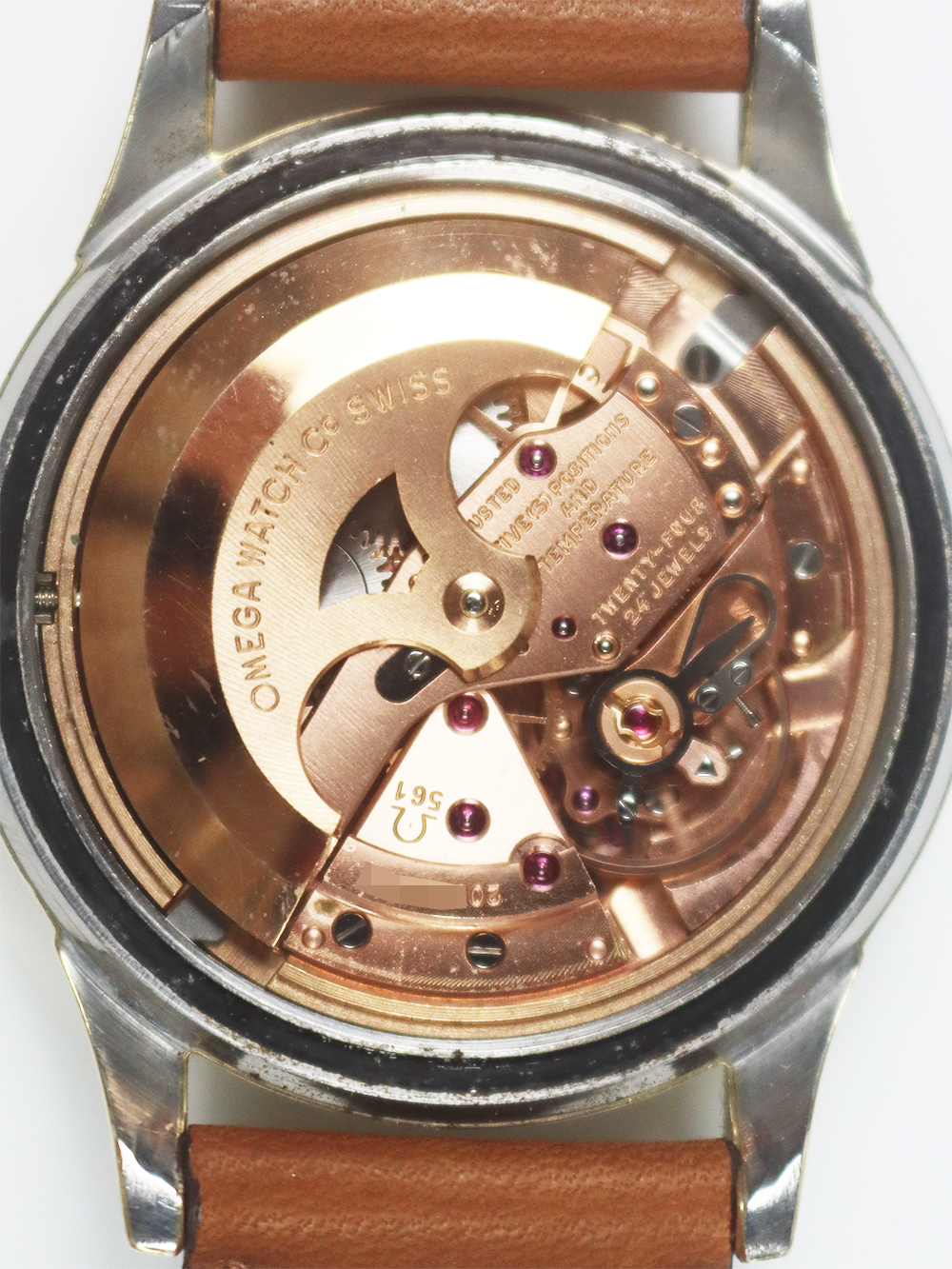 スイス時計メーカーが安定的時計製造がほぼ整った1860年頃、当時は当然マリンクロノメーターや懐中時計を製造している頃ですが、、世界市場に製品の良さをアピールする為に各社こぞって精度においてはクロノメーター仕様、クロノメーター検査で認定を取得する時計製造が出来る事がメーカーとして欠かせない命題となっていました。 オメガ社も1900年前後にクロノメーターコンテストで優秀な成績を収めた記録が多数残っています。1940年代、ほぼ各社腕時計の製造が主流となっていった時期にオメガ社は代表キャリバーの一つ、30mmキャリバーで始めてクロノメーター規格である認定を取得しました。こうした歴史的な動きの中で、スイス時計メーカー各社が主流となっていた腕時計の安定製造、そしてそのメーカーの評価につながる高精度の機械製造は会社内でも一部の熟練の職人の専門技術スタッフに委ねられ各社進歩を遂げてゆきました。オメガ社においてはクロノメーター規格の手巻き30mmキャリバーから1943年にはcal.330搭載のクロノメーターモデルを完成させ、オメガ社の自動巻きクロノメーターモデルのスタートをきりました。オメガ社のクロノメーターモデルの大きな特徴の一つは初期型は手巻きも自動巻きも特殊な円形のカム式緩急針が採用されており、1950年代に入り、通称″スワンネック”と呼ばれるネジによる緩急調整型へと変化を遂げました。